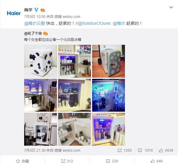 孫曉云女士梅花網(wǎng)傳播業(yè)大展上透露,運(yùn)營(yíng)著海爾官微的是一群平均年齡在1993年的90后,他們熱情又鬼點(diǎn)子多,領(lǐng)導(dǎo)給予了他們充分的信任,他們擁有著自主的決策權(quán)。當(dāng)一個(gè)熱點(diǎn)出來(lái)了,他們反應(yīng)熱點(diǎn)的能力非常迅速,想發(fā)的稿件從來(lái)不需要給領(lǐng)導(dǎo)審核,因此每一個(gè)新熱點(diǎn)出來(lái),你都能第一時(shí)間看見海爾的身影。